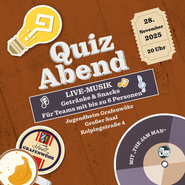 Zum bereits siebten Mal lädt die Stadt Grafenwöhr am 28. November ins Jugendheim Grafenwöhr zum Quiz-Abend mit Live-Musik ein. Die…