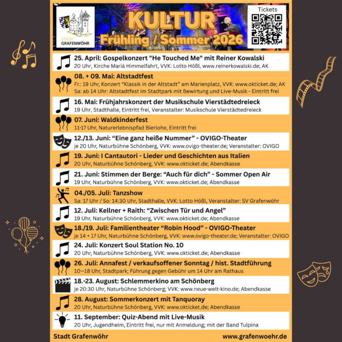 Kino, Konzerte, Theater, Feste: Das Kulturprogramm Frühling/Sommer 2026 in Grafenwöhr