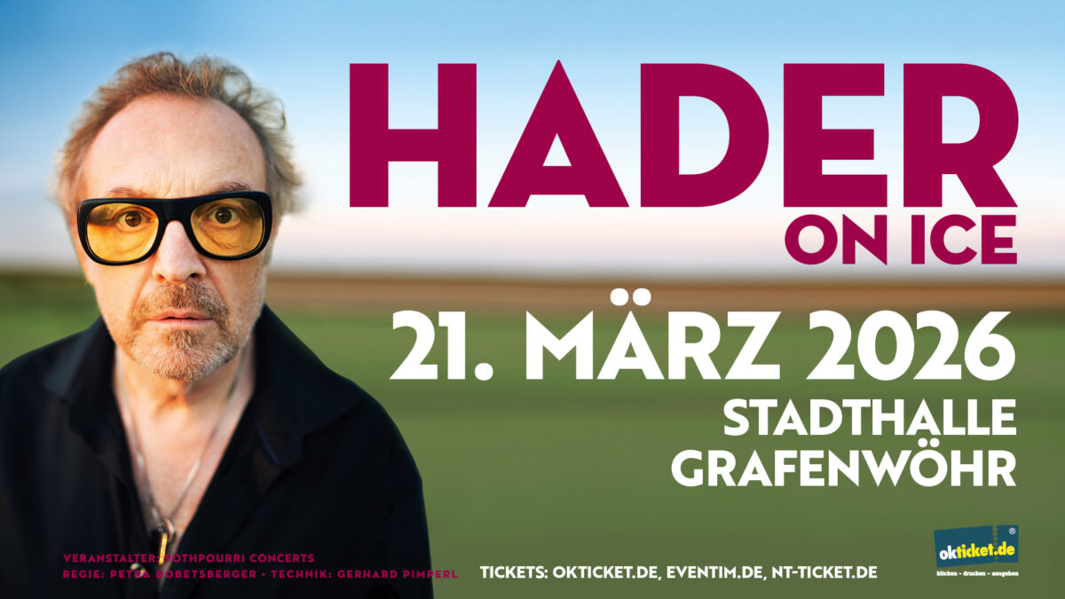 Josef Hader ist Österreichs wohl bekanntester Kabarettist, dazu noch Filmemacher und Schauspieler. Mit seinem neuen Programm „Hader on Ice“ ist er am 21. März um 19:30 Uhr in der Stadthalle Grafenwöhr zu Gast. In seinem schwarzhumorigen Programm blickt Hader in so manche tiefe Abgründe, bewegt sich zwischen Irrsinn und Tiefgang, Charme und Ekel und regt sowohl zum Lachen wie auch zum Nachdenken an.