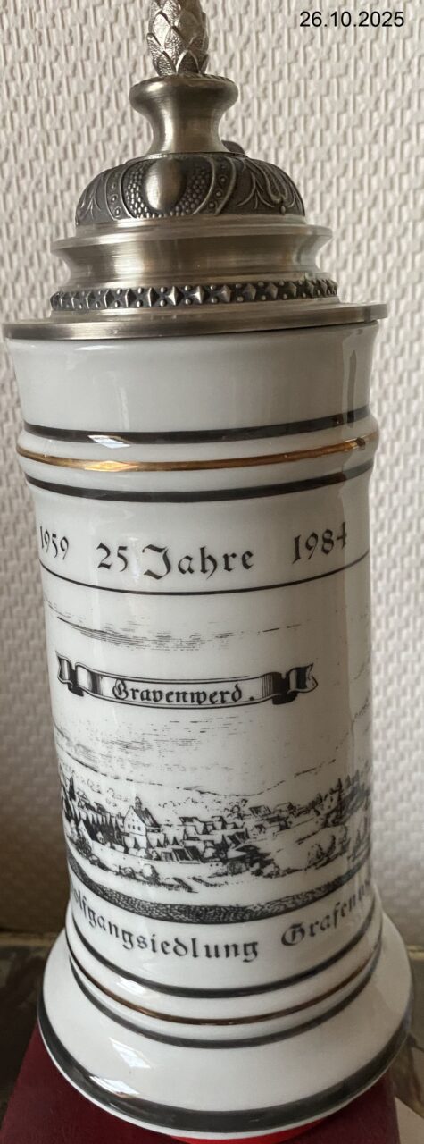 Jubiläumskrug zvk.. "25 Jahre St. Wolfgangsiedlung Grafenwöhr - 1984". FP 30€ einschl. Versand.